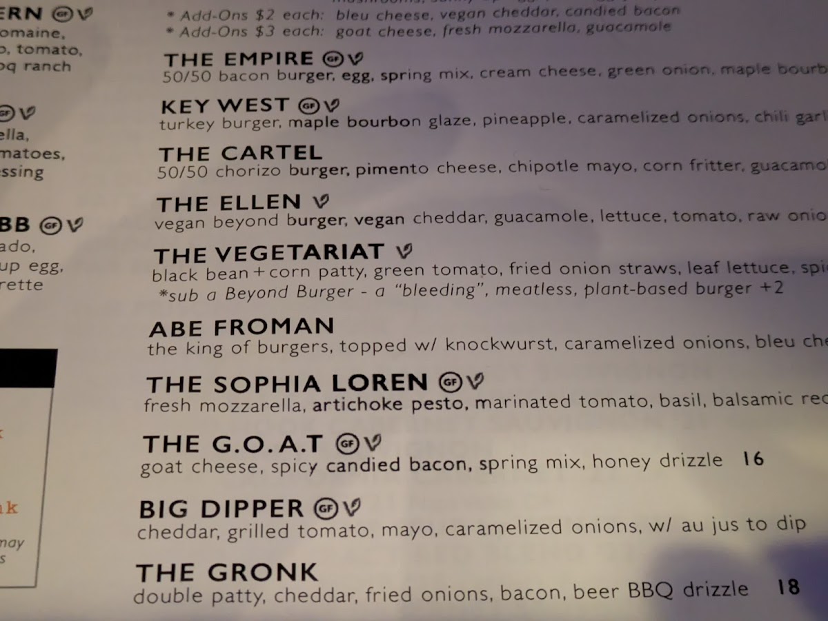 You’ll find burger options that range from the straightforward to the adventurous, such as a burger topped with creamy pimiento cheese or the savory Pork Belly BLT. Alongside these, lighter choices like the fresh Caprese Salad or a hearty Steak Sandwich provide a nice balance. The sides offer simple comforts like crispy fries or a tangy apple cabbage slaw, complementing the main dishes well.